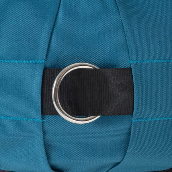 Eine große Fronttasche ermöglicht es, die nötigen Dinge für ernsthafte Abfahrten zu verstauen, ergänzt durch eine zweite Seitentasche. Der abnehmbare Gurt ermöglicht es, andere Mitglieder des Teams mit einem Edelstahlring zu ziehen.
