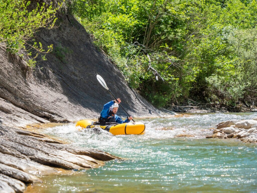 Discover the basics of packrafting on the upper Drac (class II, for beginner paddlers).