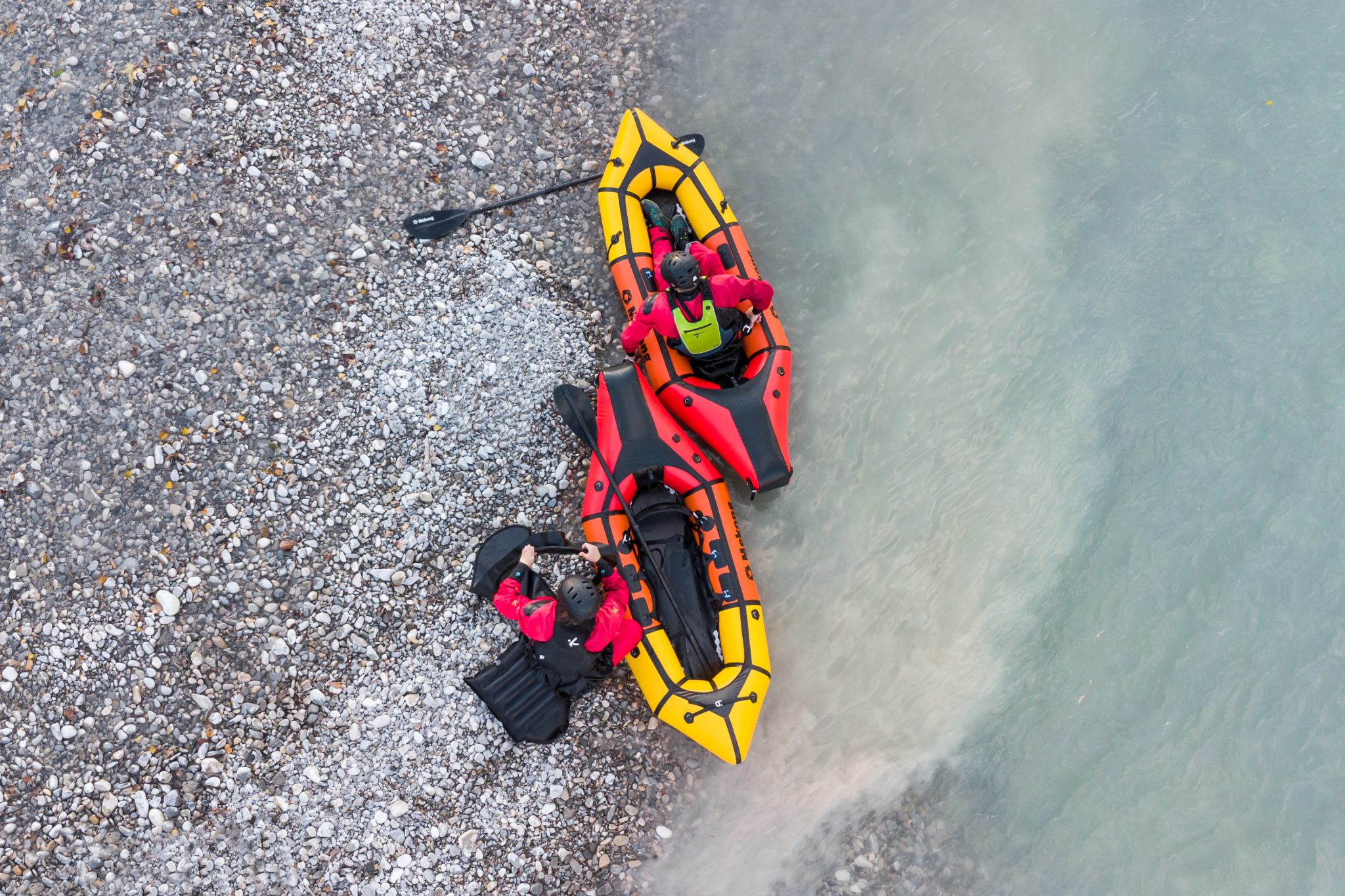 Three packrafts in one! A boat capable of navigating Class IV whitewater as well as calm water, accompanying you on a day bikerafting trip or a multi-week expedition.