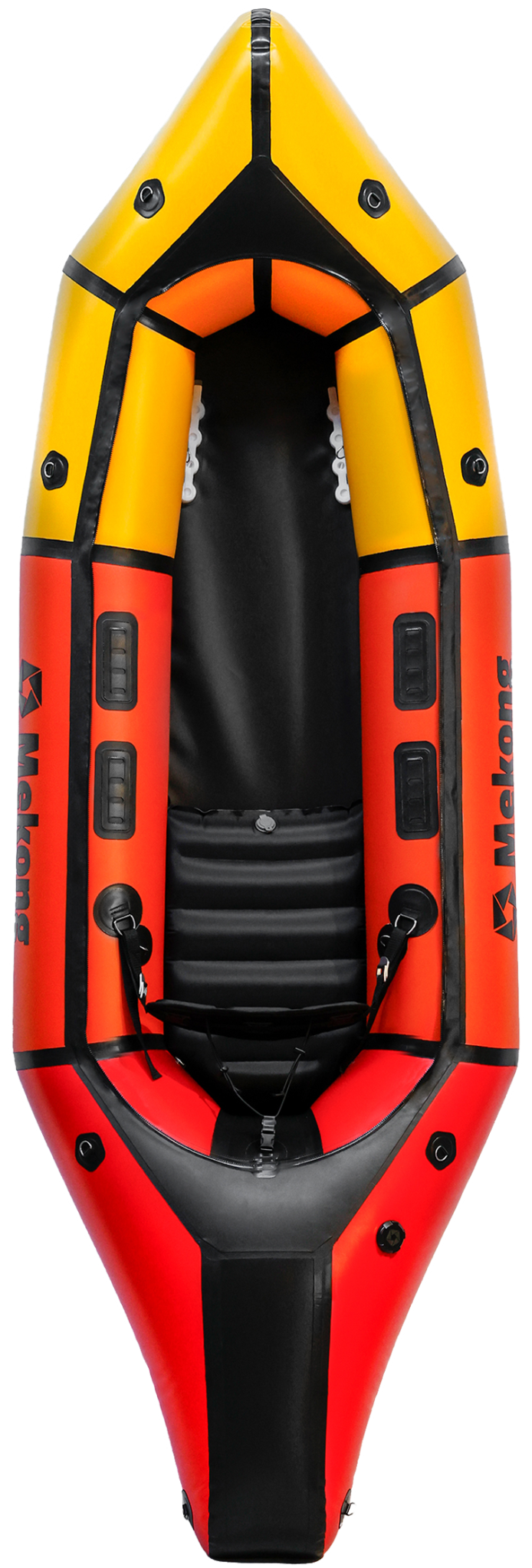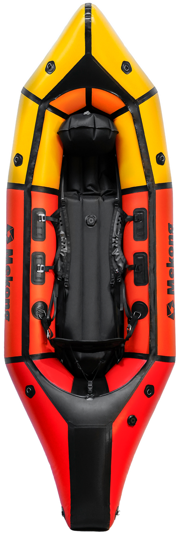 The only color available is Yellow, Orange, Red & Black, from the front to the back of the packraft.